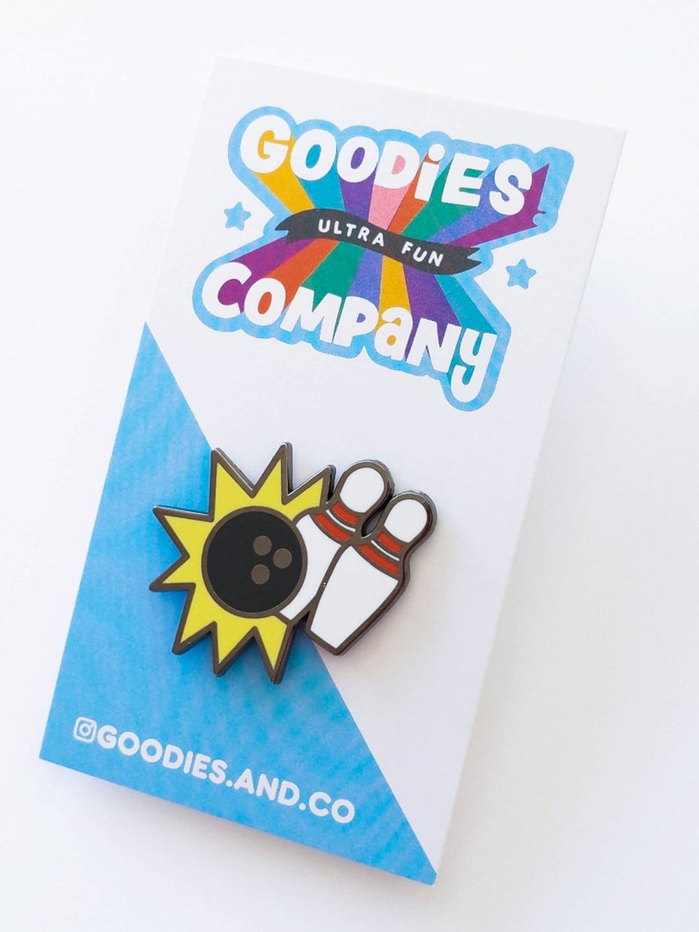 Were you born to bowl? Are you terrible at bowling? Either way, this is the pin for you. Channel your inner bowling league grandmother with this spiffy pin from Goodies and Co! Get one for your whole bowling crew!